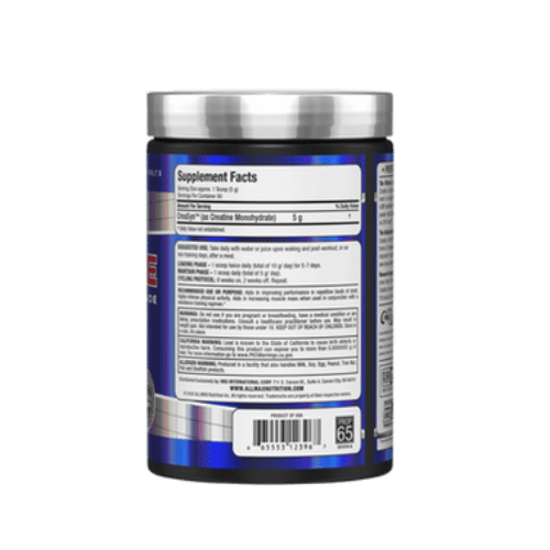 La creatina es un compuesto nitrogenado que se produce naturalmente en el cuerpo y ayuda a suministrar energía a todas las células del cuerpo, principalmente a las células musculares. La creatina es una fuente de energía rápidamente disponible para las contracciones musculares que se utiliza para mejorar el rendimiento deportivo. Se ha demostrado que la creatina aumenta la fuerza y ​​la resistencia máximas hasta en un 15 % y hasta un 30 % en la producción de potencia y la liberación de energía en deportes de intervalos/ráfagas cortas como fútbol, ​​hockey, béisbol, fútbol y levantamiento de pesas; cualquier cosa que requiera intensas ráfagas de velocidad y potencia.*
