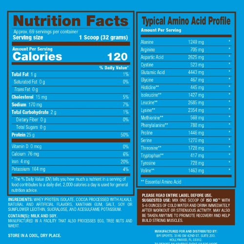 Proteína de alta calidad: cada cucharada de ISO HD contiene 0.88 oz de aislados de suero de alta calidad probados en laboratorio.
