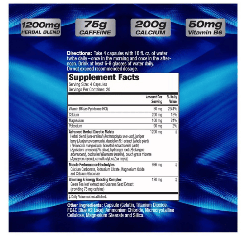 Diurético herbal natural para hombres y mujeres que promueve la pérdida rápida de agua, reduce la hinchazón, apoya la pérdida de grasa y proporciona energía a través de cafeína natural, con advertencias de uso para adultos sanos. Diurético a base de hierbas totalmente natural para hombres y mujeres que favorece la rápida pérdida de agua y una mayor definición muscular