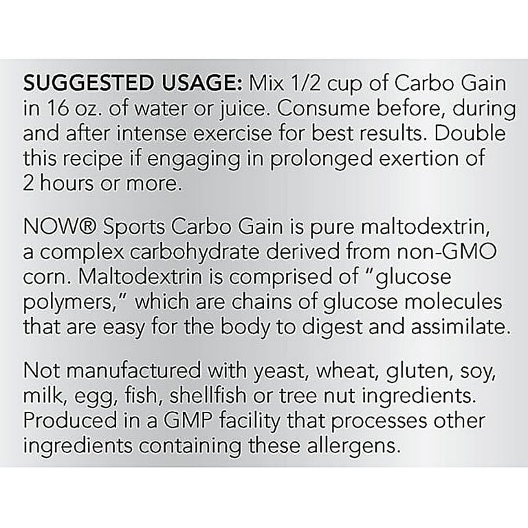 NOW Sports Carbo Gain – Energía Pura y Recuperación Muscular (8 Lb)