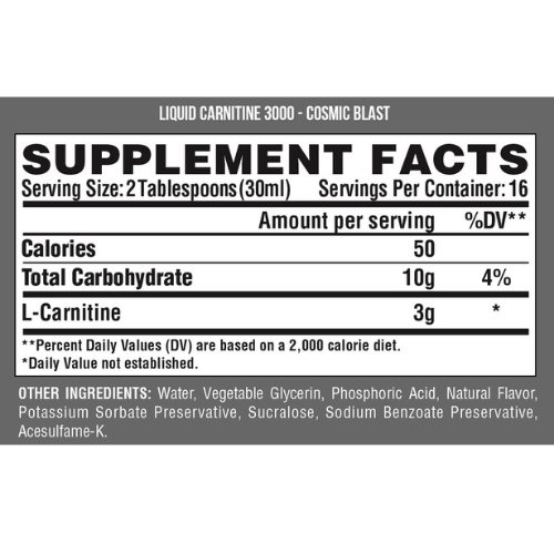 Nutrex Research L-Carnitine 3000 es un suplemento líquido que ofrece 3000 mg de L-Carnitina por porción, diseñado para mejorar la resistencia y el metabolismo de grasas sin estimulantes, ideal para atletas y entusiastas del fitness que buscan maximizar su rendimiento y alcanzar sus objetivos de acondicionamiento físico. 3000 mg por porción: Nutrex Research L-Carnitine 3000 ofrece un soporte para el metabolismo y la resistencia que proporciona 3000 mg de L-Carnitina líquida pura en cada porción. Con una generosa botella de 15,72 onzas líquidas, obtienes 31 porciones, lo que la convierte en la opción ideal para quienes buscan un suplemento de carnitina líquida eficaz.